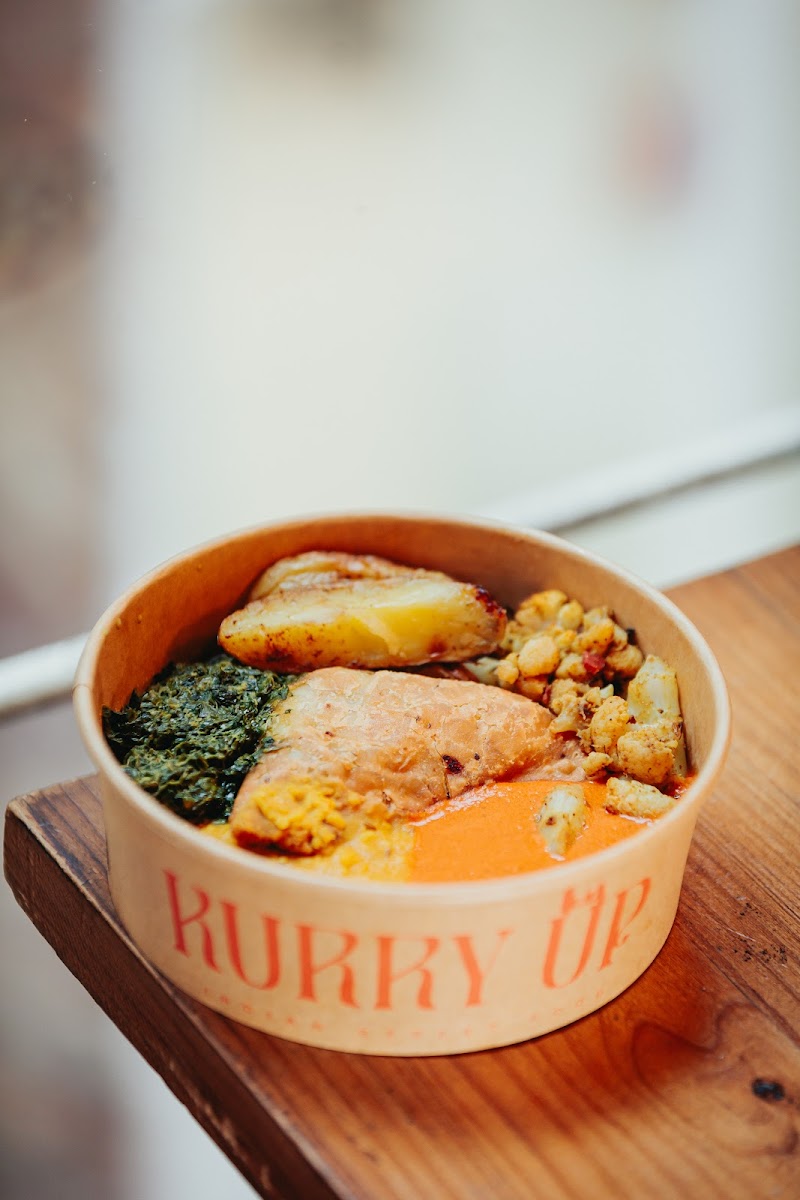 J’ai découvert Kurry Up ce midi et j’ai trouvé l’expérience globalement satisfaisante. Le plat était copieux, le poulet ainsi que la sauce butter chicken étaient savoureux, et le naan était également très bon. Je me permets toutefois de faire deux petites suggestions : il serait appréciable d’avoir davantage de légumes chauds (à la place des légumes froids), et de couper le poulet en morceaux plus petits pour faciliter la dégustation.
